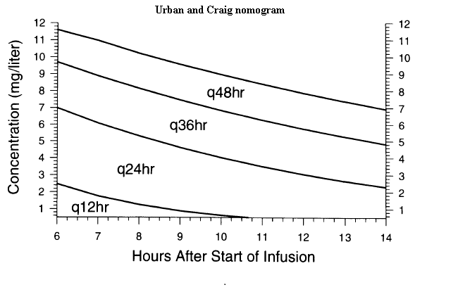 - After calculating dosing interval from Urban and Craig nomogram below then: