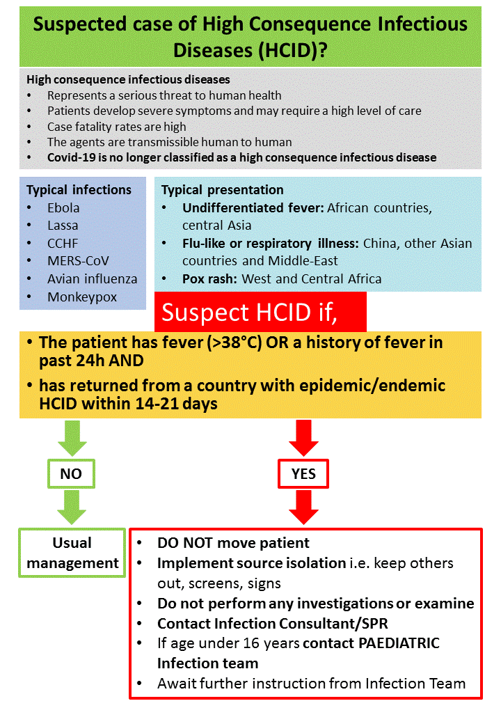 - If potential Avian Influenza (e.g. History of travel to SE Asia or S Asia), Discuss urgently with Micro/ID; see Triage of HCID.