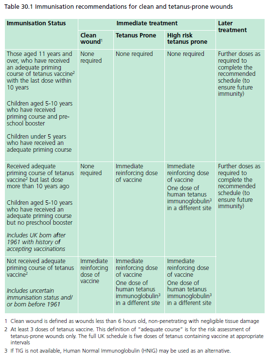 Management of tetanus-prone wounds